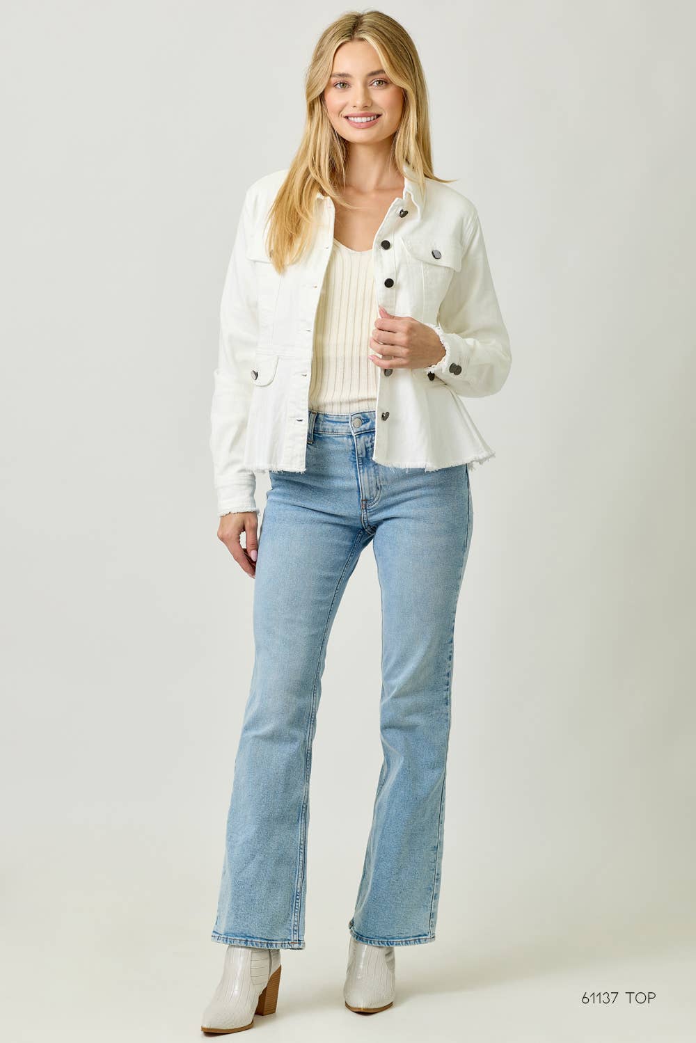 60711 Washed Denim Peplum Jacket