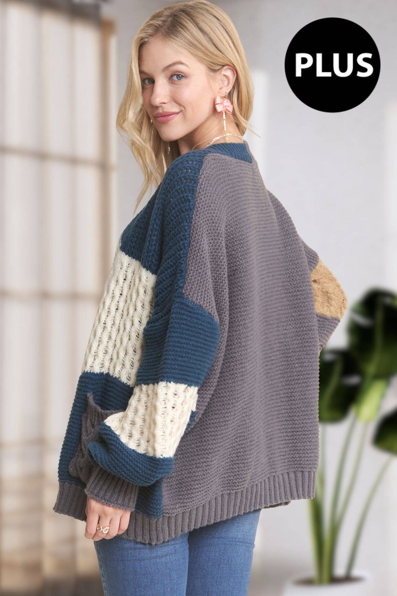 CESW3597X - PLUS COLORBLOCK SWEATER CARDIGAN