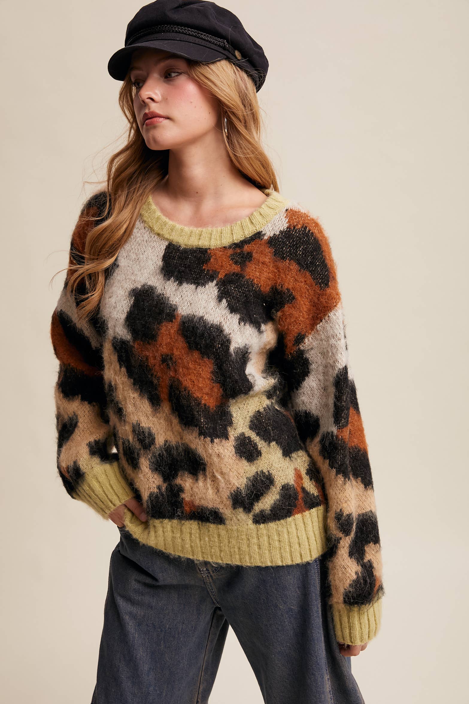 Fuzzy Abstract Leopard Knit Pullover Sweater LSW1005