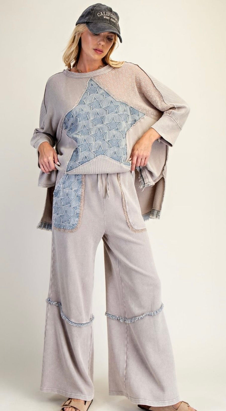 STAR PATCH DETAILING WASHED WAFFLE KNIT TOP